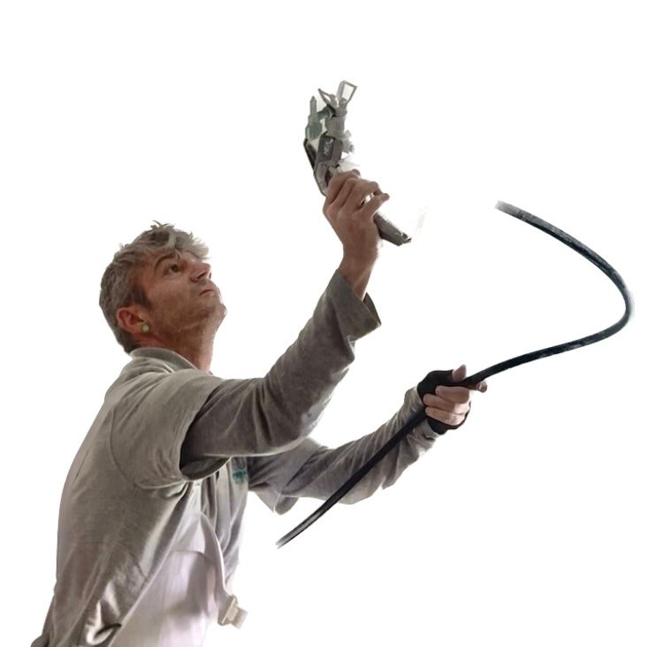 A YouTube Short of us spraying a mist coat on fresh plaster.